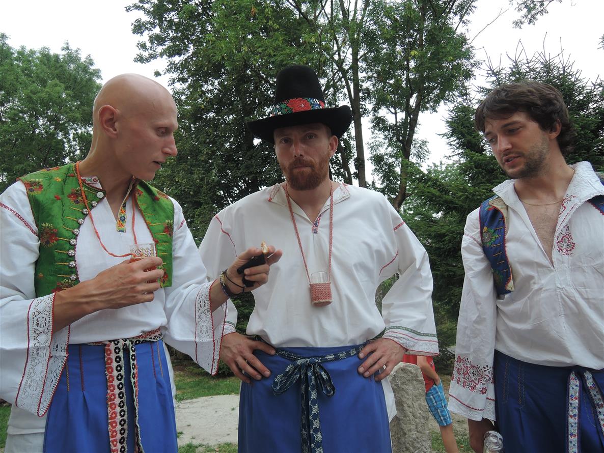 Folklorista by nás za kroje nepochválil, je to "co dům dal", ale veselí a legrace by si s námi užil dost.