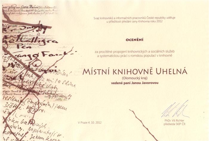 za procítěné propojení knihovnických a sociálních služeb a systematickou práci s romskou populací v knihovně