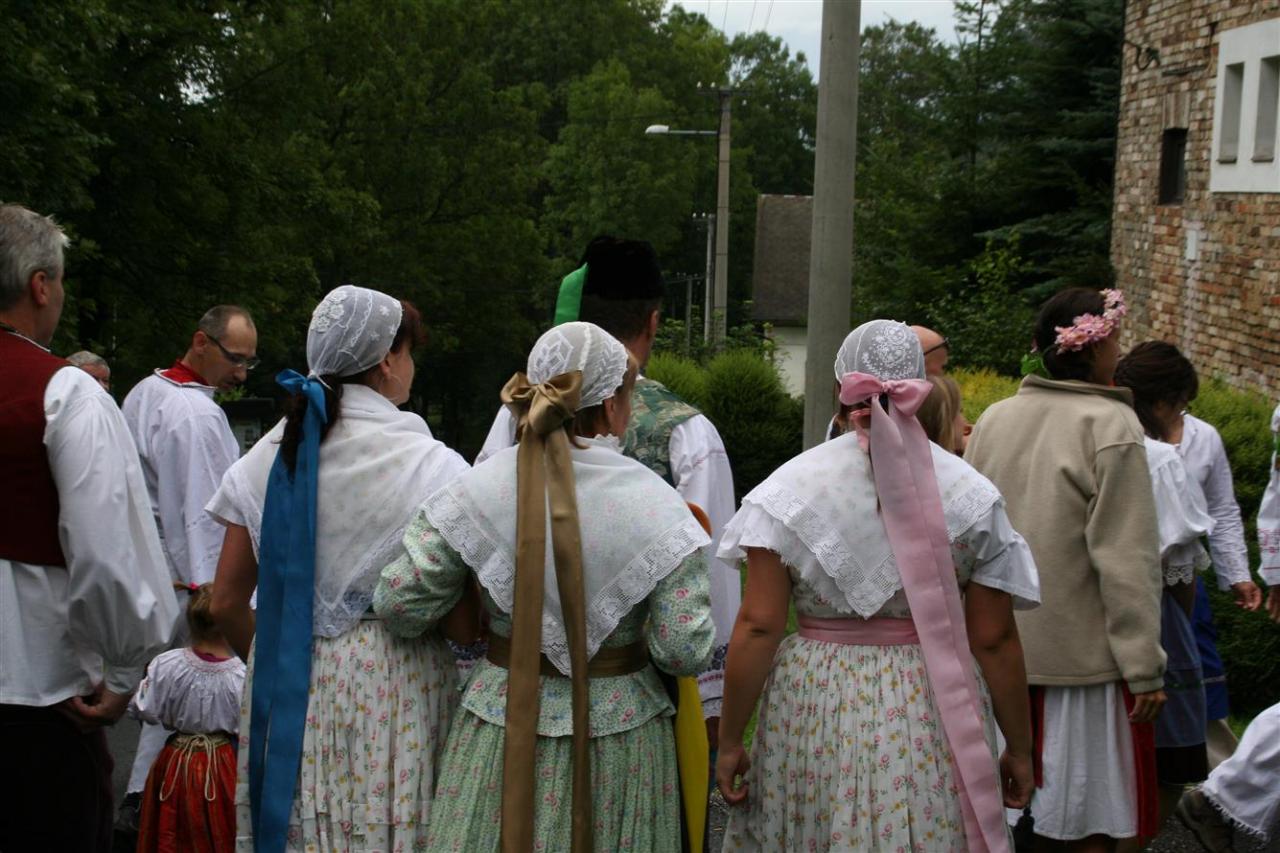 Když průvod dorazí k dolní chalupě, účastníci nasedají na vyzdobené vlečky a odjedou ke kříži, který stojí na místě vyhořelého kostela. Velký dík patří panu Vladimíru Rujákovi, který vyrobil a postavil kříž nový.